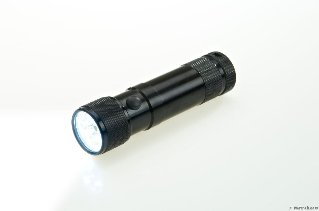 LED-Taschenlampe mit integriertem roten Laserpointer, mit 8 superhellen LED´sSofttouch-Schalter mit 2 Funktionen (1. LED, 2. Laserpointer), robustes Metallgehäuseincl. 3 AAA Batterien